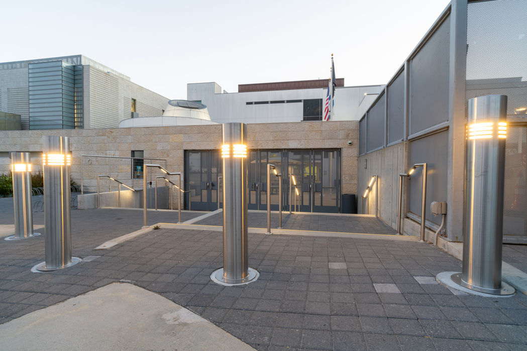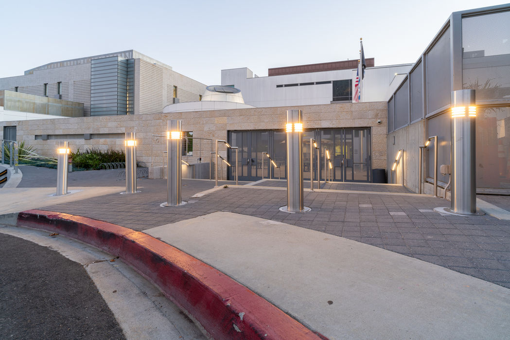 Scope: Crash-rated illuminated bollards secure the building’s entrance while providing essential lighting for visitors. Their robust design protects the facility while the integrated illumination enhances visibility and reinforces the modern architectural character of the site. The result is a seamless balance of safety, security, and design.